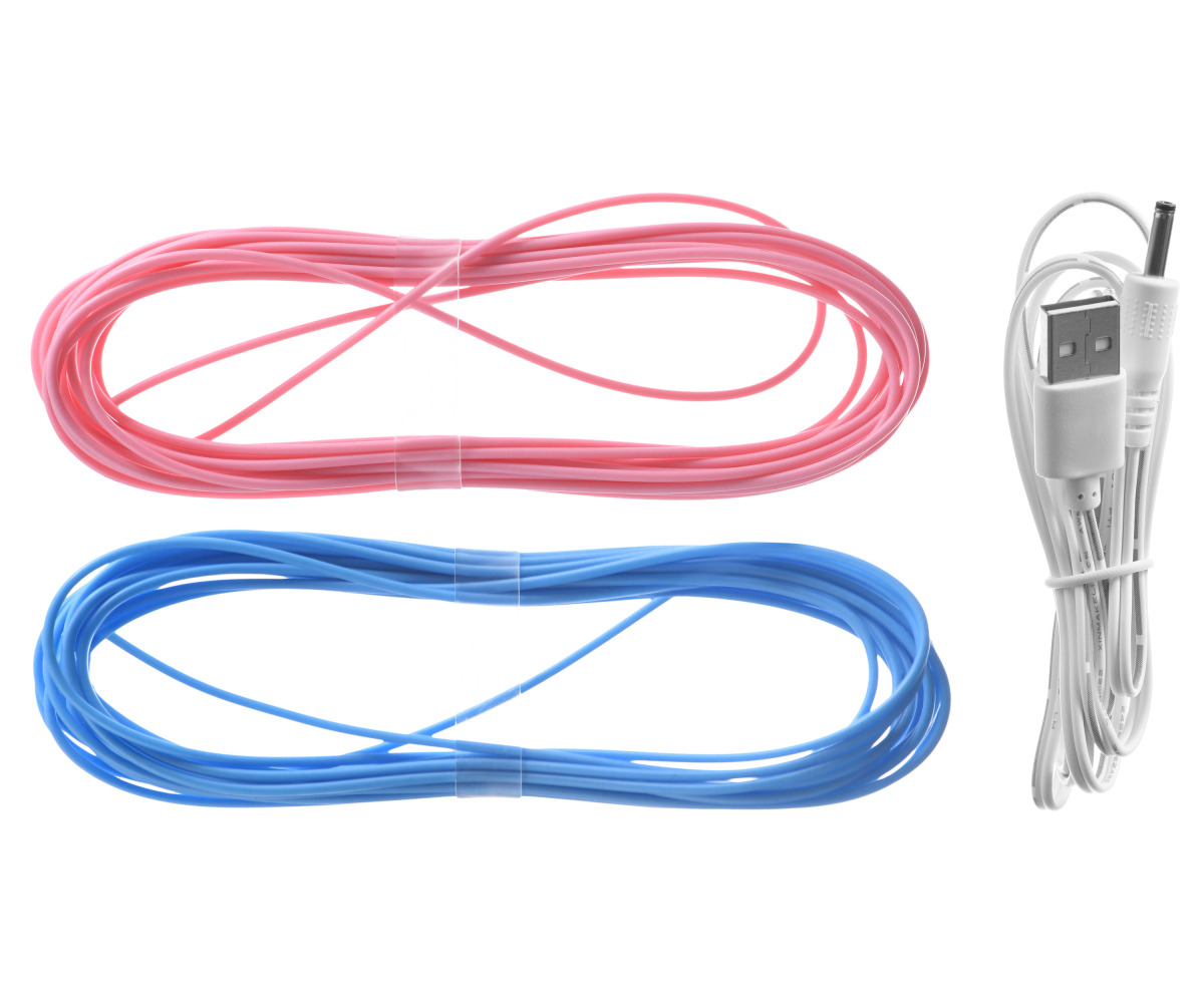 Комплектація: інструкція, кольорові нитки для малювання - 2x5 м, трафарети - 1 шт, 3D ручка, кабель для зарядки, захисні накладки для пальців.