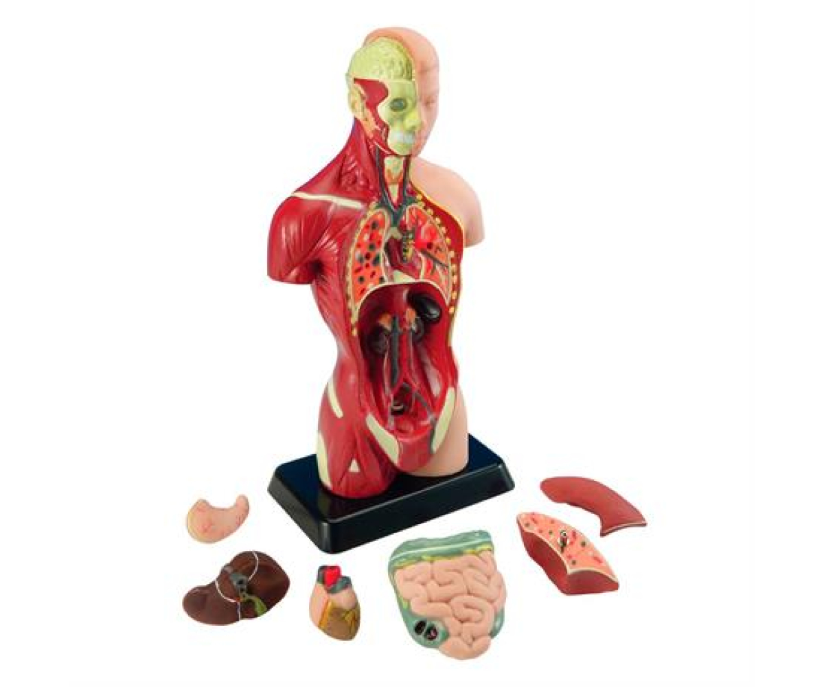 Використовується як дидактичний матеріал для уроків біології. Обʼємна модель. Торс людини (анатомічна модель людини збірна 27 см), складається з 8 елементів і підставки. Макет призначений для наочного вивчення анатомії.