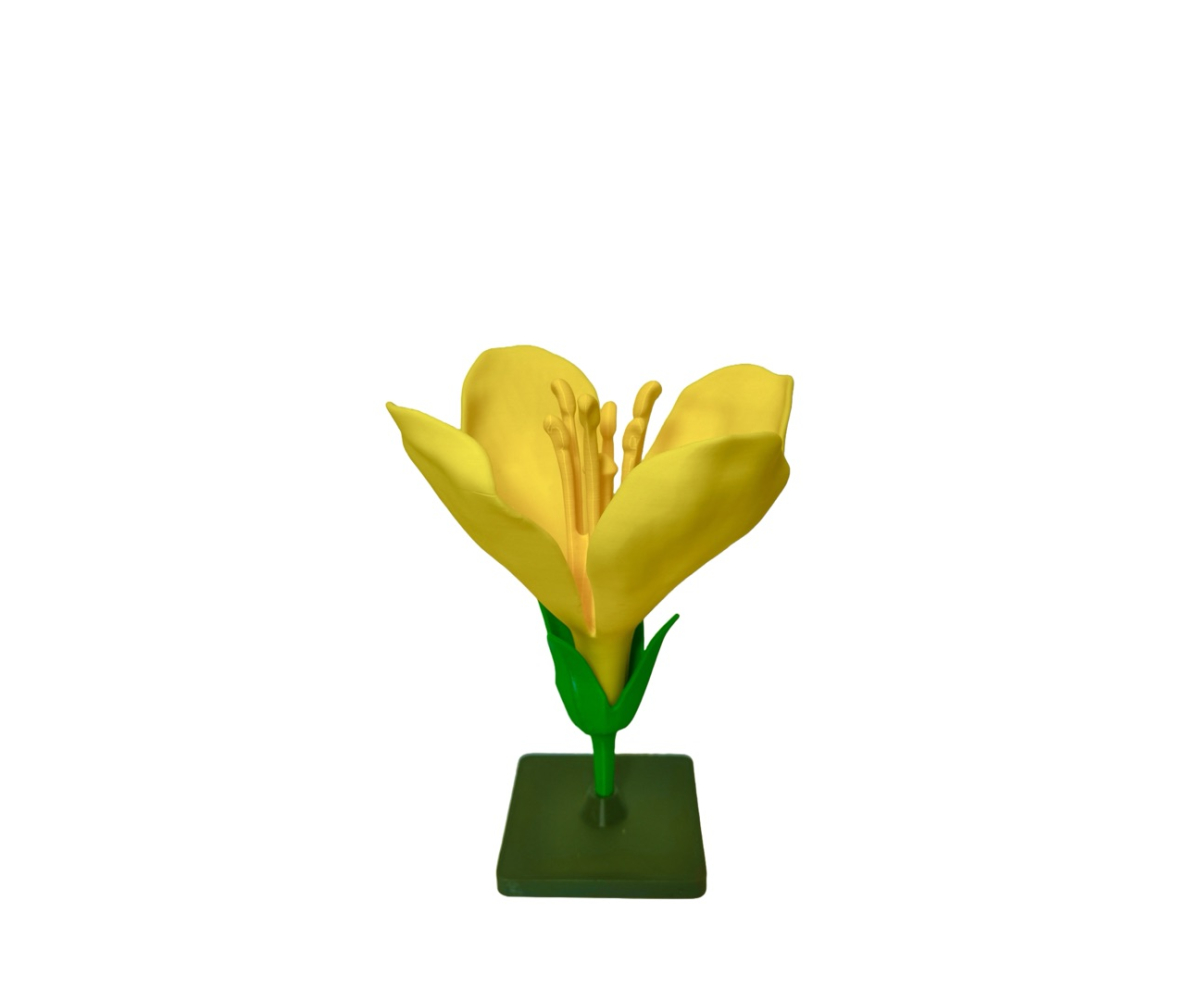 Модель виготовлена з високоякісного філаменту, забарвлена в природні кольори. Модель демонструє чашечку квітки, віночок, приймочку маточки, колонку пиляків, квітконіс.