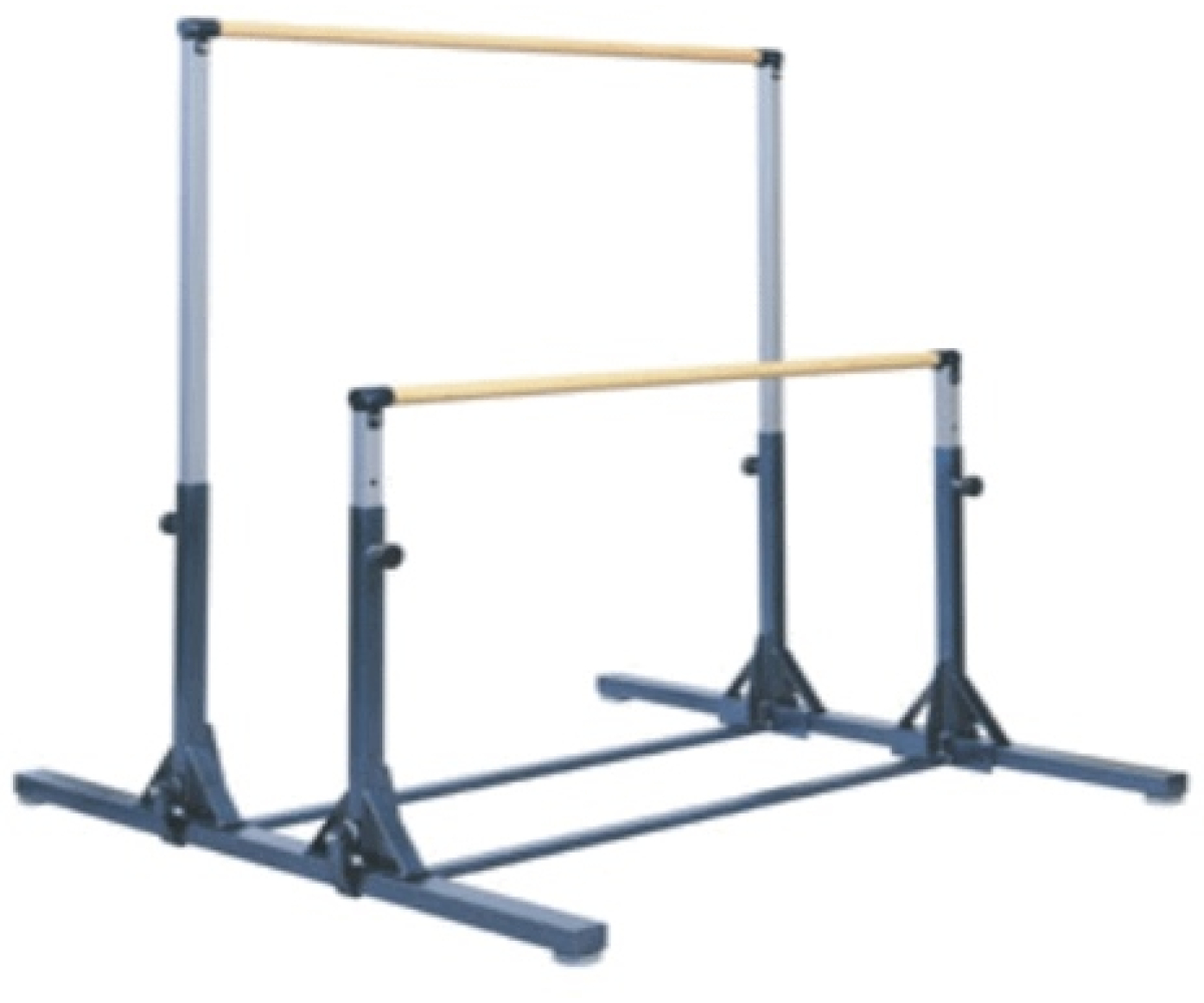 Бруси гімнастичні різновисокі представляють із себе пару горизонтальних жердин, встановлених на різній висоті щодо підлоги.