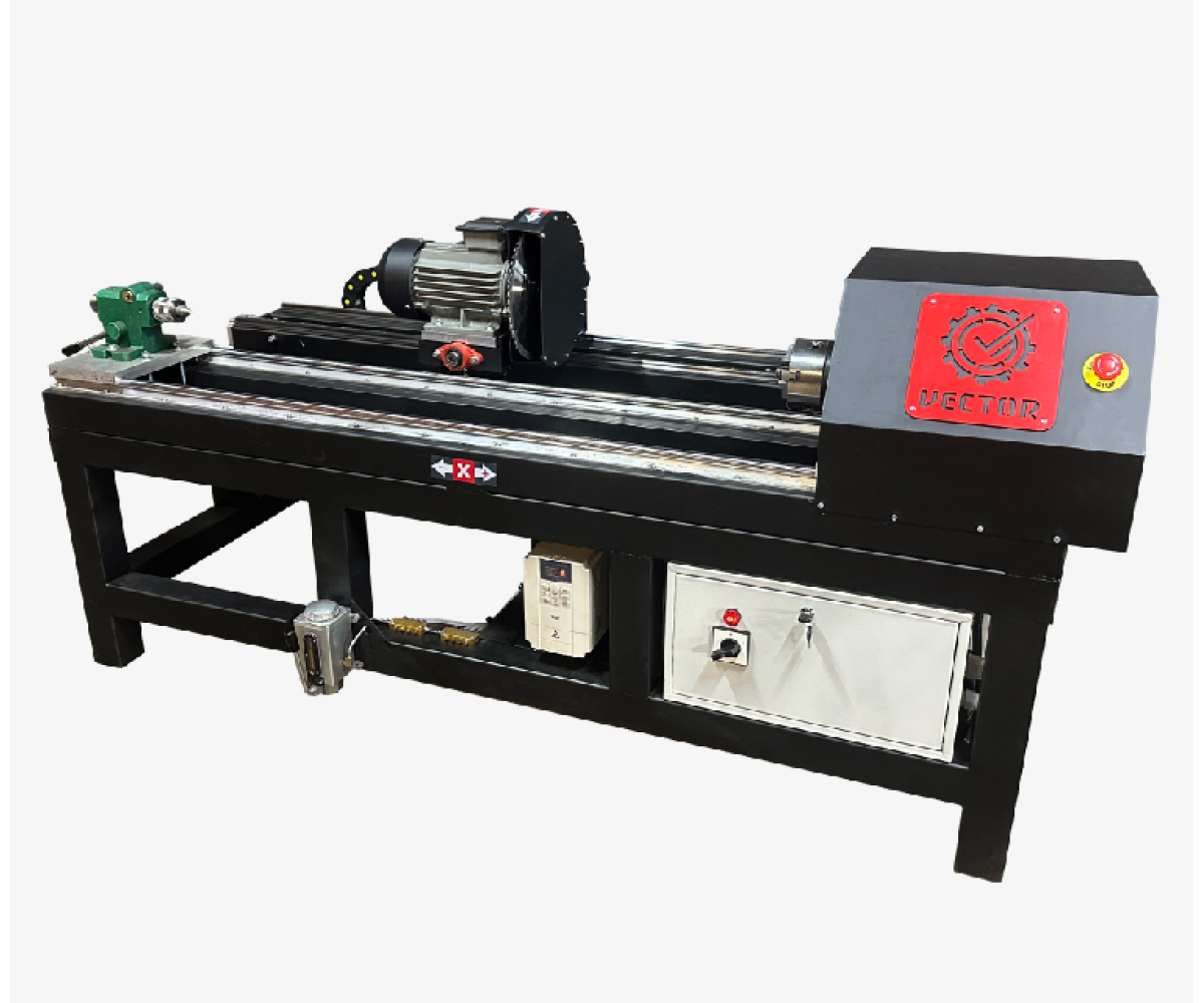 Інтегрований потужний пильний вузол (3 кВт, діаметр пили 300 мм) виконує точне поздовжнє точіння. Токарний вузол з асинхронним двигуном (3 кВт) та планшайбою 120 мм забезпечує подальше обточування, формування профілю та чистову обробку поверхні без перевстановлення деталі.
