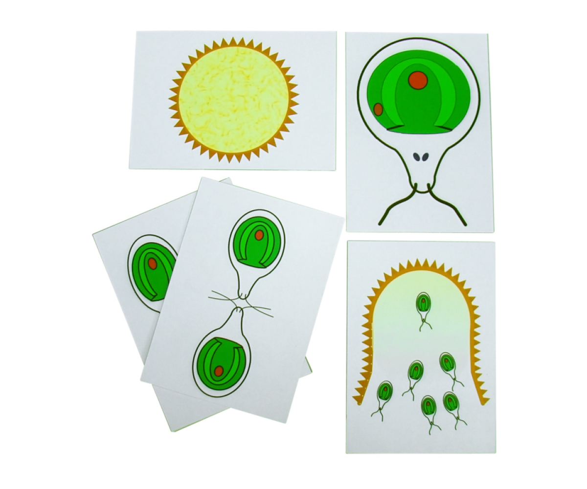 Використовується модель-аплікація «Розмноження водорості» в кабінеті біології загальноосвітнього навчального закладу під час вивчення розділу «Рослини. Бактерії. Гриби. Лишайники». Модель-аплікація містить 9 карток, що демонструють особливості розмноження та стадії поділу одноклітинної водорості на прикладі хламідомонади.