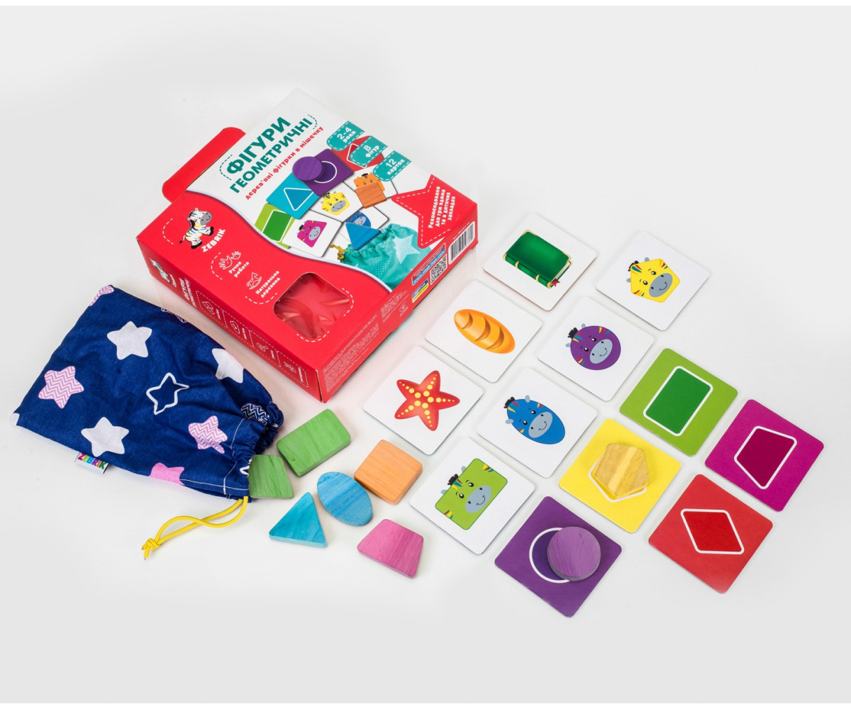 Геометричні фігури. Дерев’яні фігурки в мішечку