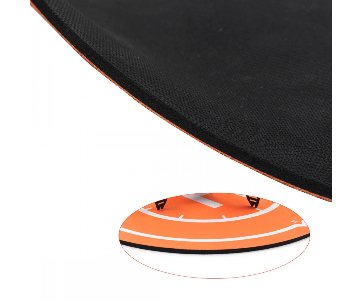 Посадковий майданчик для квадрокоптера виготовлений із спіненої гуми товщиною 3мм, він має виняткові водостійкі характеристики та високу здатність поглинати вібрації, пом'якшування ударів. Зверху аксесуар покритий зносостійкою тканиною помаранчового кольору, стійкою до впливу ультрафіолетових променів..