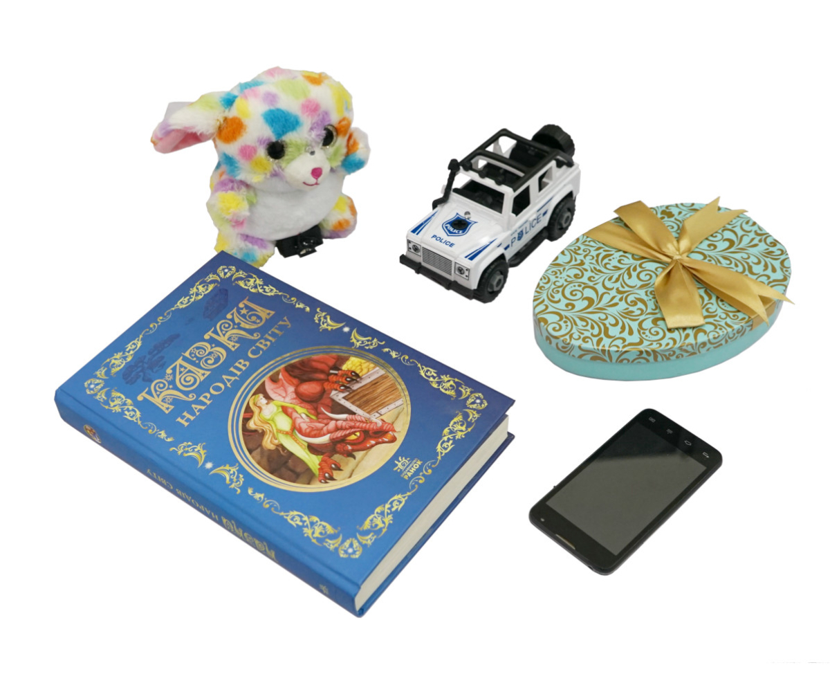 Комплект складається із п‘яти одиниць моделей мін, закамуфльованих в іграшку. Кожна з моделей має світлову індикацію та укомплектована батарейками АА в кількості 2 шт.