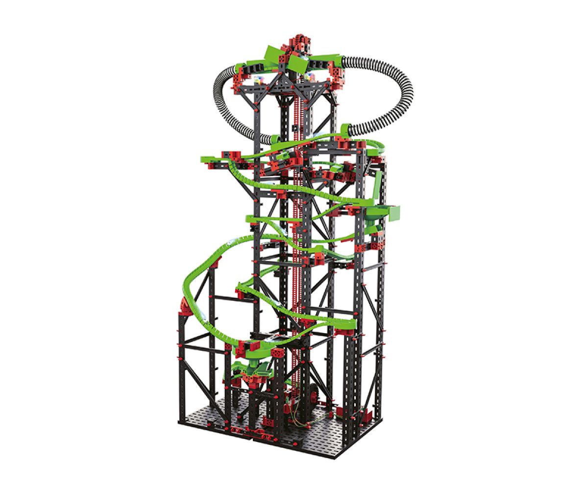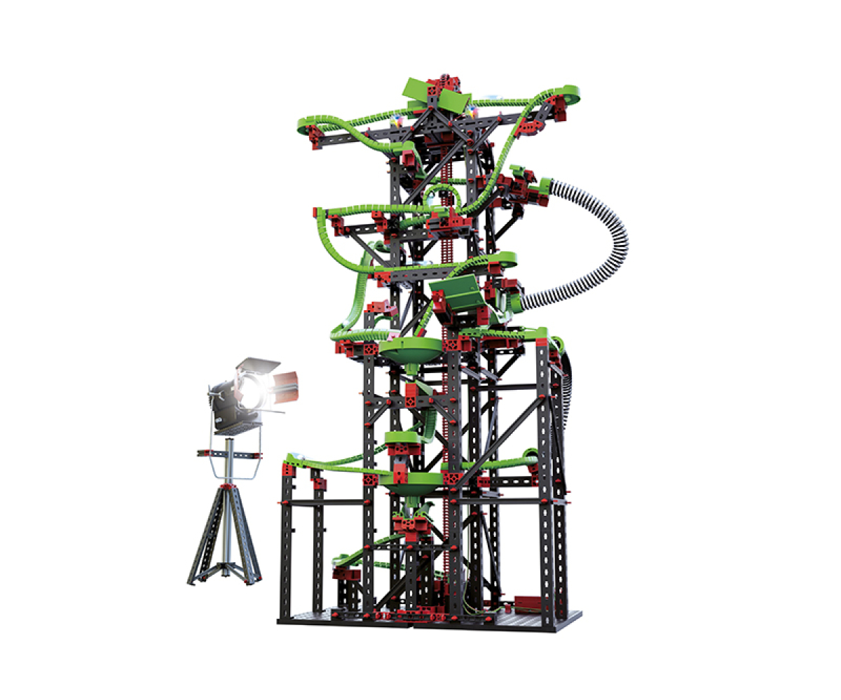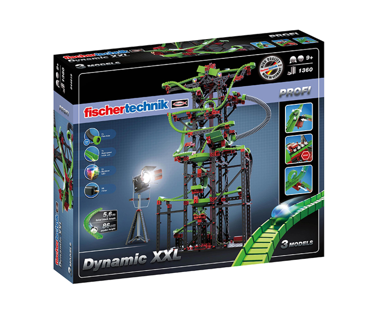 Більше веселощів, швидкості і справді гігантські розміри - це відмінні риси набору «Динаміка». Загальна довжина траси - 5,6 м! У цьому конструкторі безліч нових додаткових функцій. Перехрестя, семафори, гнучкі тунелі і яскраві світлодіоди перетворять спуск кульок на справжню пригоду. За допомогою цього набору можна вивчити такі фізичні явища як: інерція, прискорення, збереження енергії, імпульсу та інші теми. Додаткові елементи, що вбудовуються в маршрут, забезпечують більше можливостей для будівництва нових кумедних конструкцій.