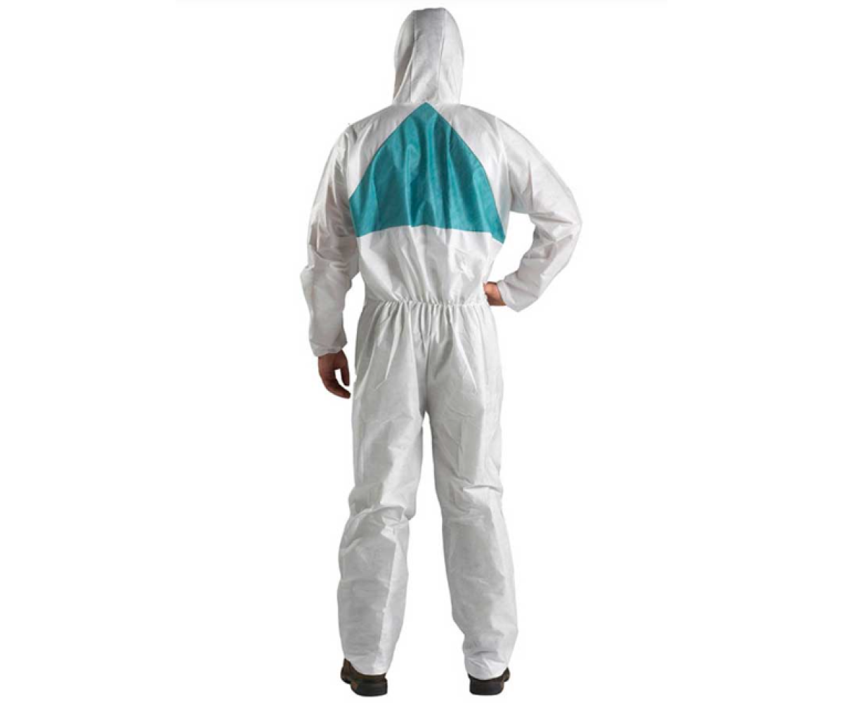 Комбінезон виконаний з дихаючого багатошарового поліпропілену SMMMS білого кольору з зеленою трикутної вставкою на спині. Внутрішні шари поліпропілену виступають в ролі фільтра для захисту від частинок пилу і аерозолів, а зовнішні -придают матеріалу міцність. На комбінезоні передбачений трьохпанельний капюшон з еластичною вставкою для щільного прилягання в області обличчя. Комбінезон застібається на двосторонню блискавку, яка заклеюється на клапан. Прошитий поліефірними / бавовняними нитками.