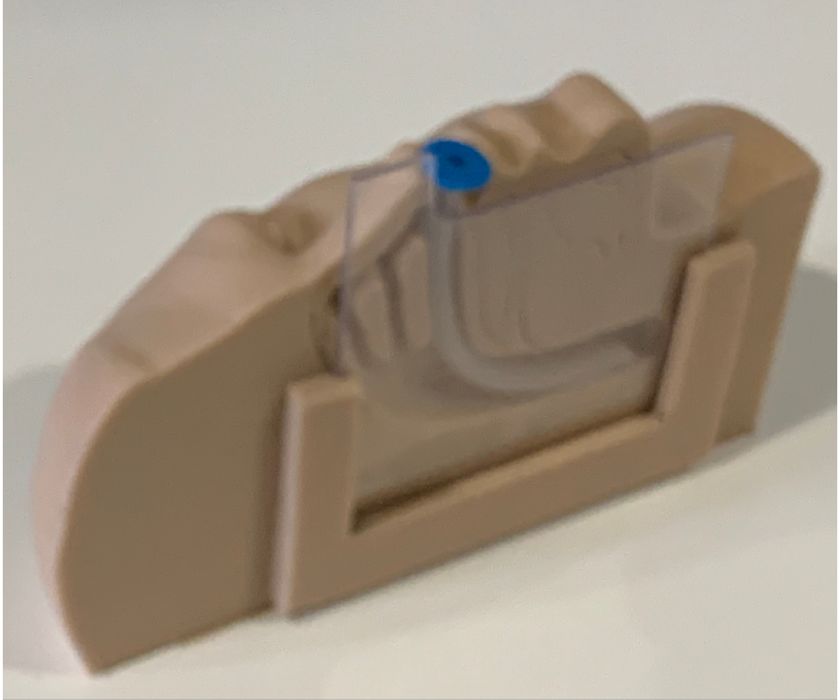 Тренажер дозволяє відпрацьовувати навичку введення назофарингеального повітроводу.  Комплектується двома пластинами – прозорою і непрозорою: