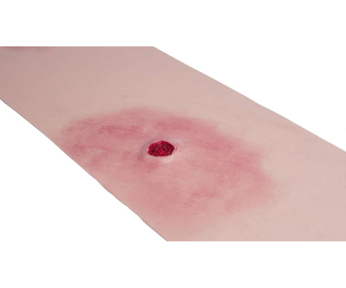 Реалістична модель для демонстрації наскрізного поранення тулуба (із входом та виходом кулі) серії PRO. Муляж має еластичне кріплення на липучках для розташування на тулубі статиста чи манекену. У комплекті іде подовжувач для збільшення довжини. Допомагає краще відпрацювати навички надання першої невідкладної допомоги при наскрізних вогнепальних пораненнях тулуба.