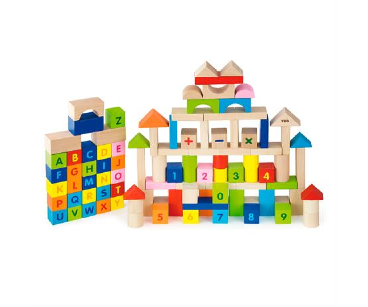 У наборі 100 блоків з якісної деревини завтовшки 3 см. Серед них є кубики із зображеннями латинських літер, арабських цифр і арифметичних знаків. Цільне дерево, ретельне шліфування, гіпоалергенні барвники, яскравий і привабливий дизайн – у цьому наборі є все, щоб дитина розвивалася.