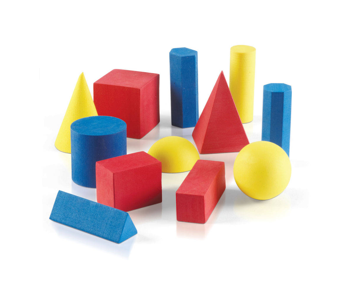 У наборі: куб, циліндр, призма, піраміда, сфера, напівкуля, конус і прямокутник.
