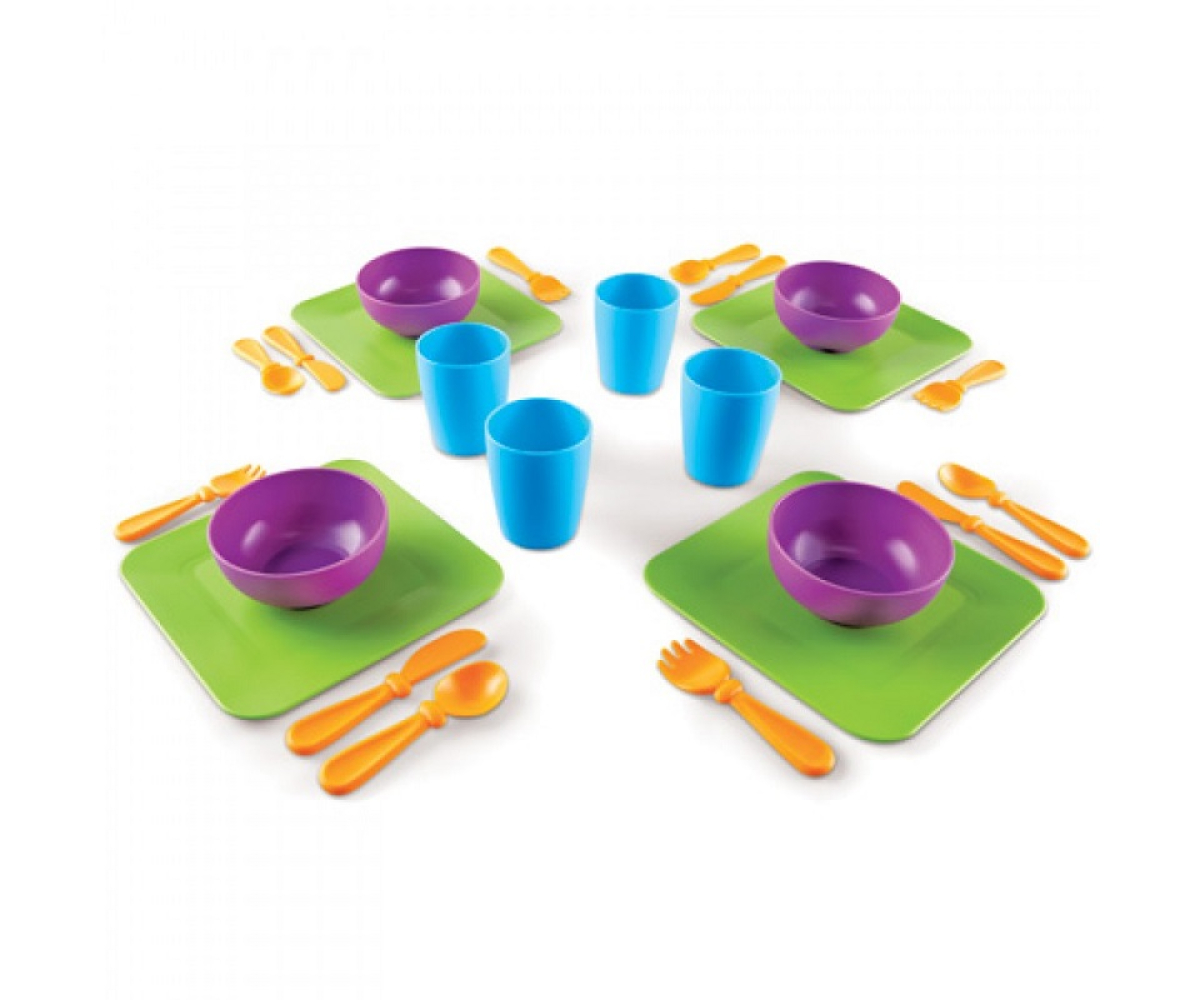 Використовуйте цей набір, щоб навчити дітей тому, як сервірувати стіл. Це розвиває уяву і соціальні навички.