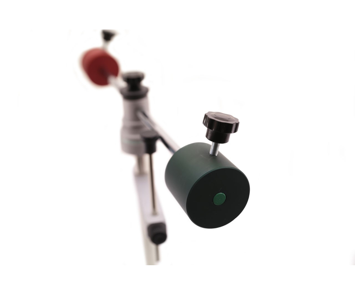 За допомогою цього пристрою можна проводити експерименти з динаміки обертального руху та моменту інерції тіл, що обертаються, використовуючи секундомір (не входить до комплекту).