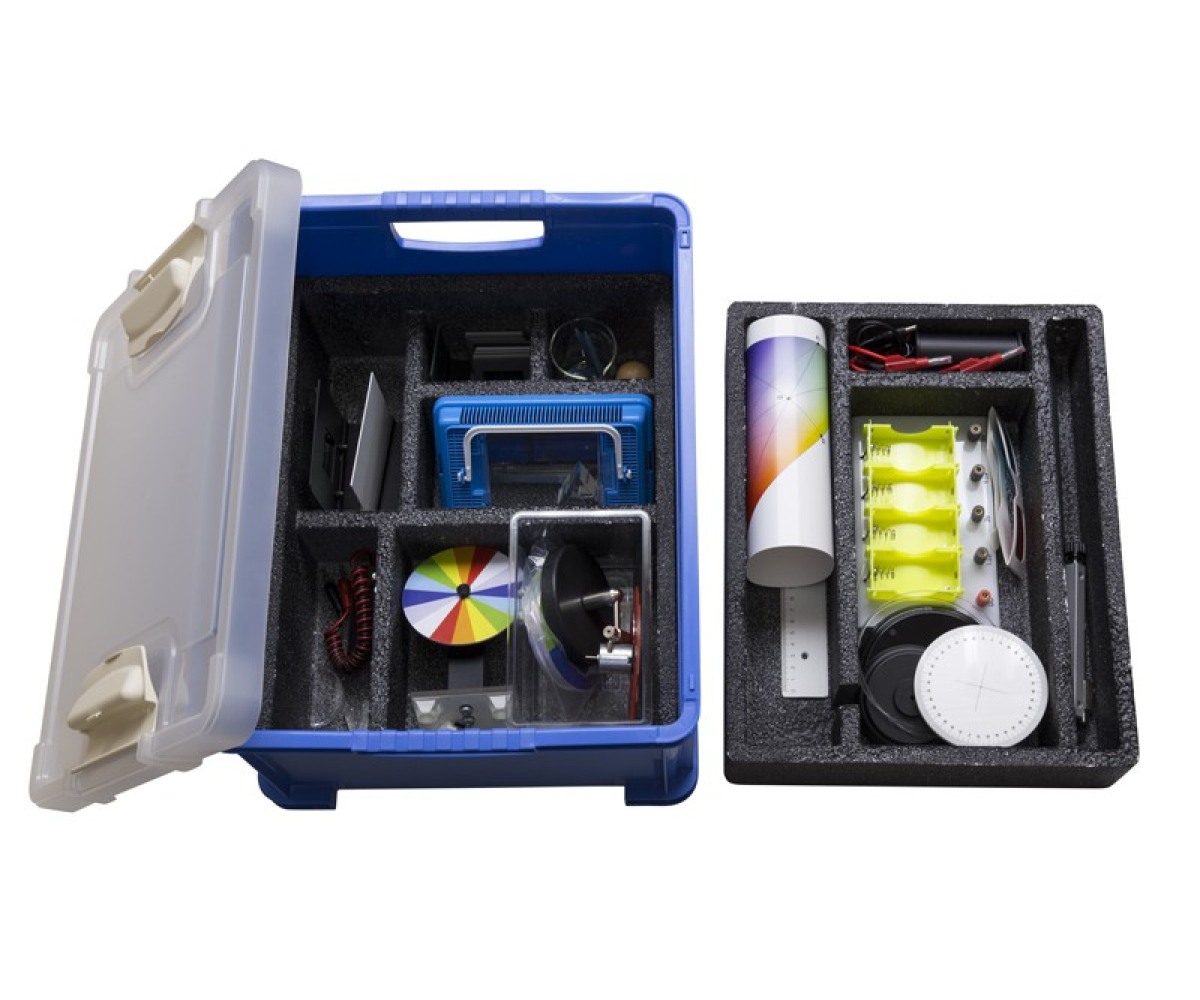 Цей набір призначений для дослідження фізичної природи світла і кольорів, лінз, людського зору та оптичних ілюзій.