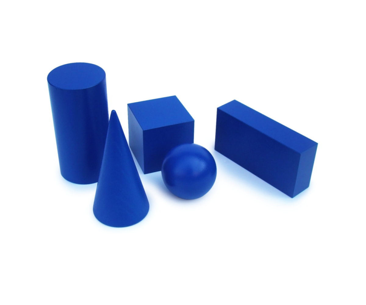Набір має містити не менше 9 основних геометричних моделей та фігур, що виготовлені з натурального дерева. Розміри тіл: куля, куб – не менше ніж 6 см, прямокутний паралелепіпед, конус, циліндр – не менше ніж 12 см.