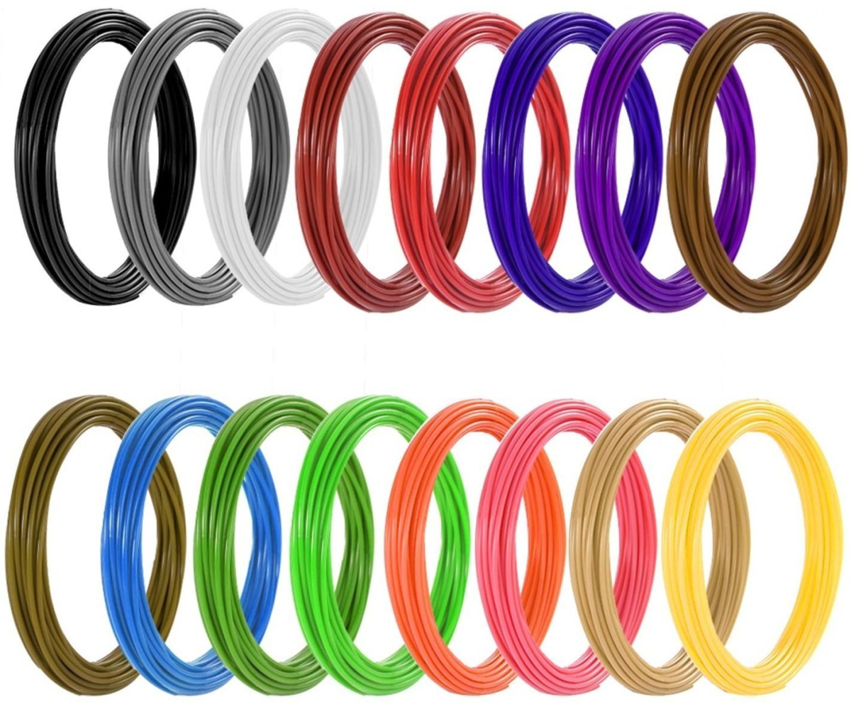 Коробка містить 20 шт ниток різних кольорів, довжиною 5 метрів кожна і діаметром 1,75мм