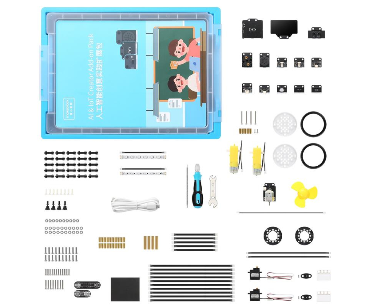 За допомогою цього набору учні зможуть вивчати штучний інтелект (AI), застосовувати цю технологію в повсякденному житті і створювати наукові проекти, використовуючи різні датчики і візуальне програмування. Модулі програмуються як на блокових мовами, так і на мові Python. Користувачам доступний широкий спектр блоків кодування для створення різних проектів. Онлайн-довідка та приклади проектів зможуть стимулювати допитливість і уяву учнів і розвивати їх розуміння штучного інтелекту.