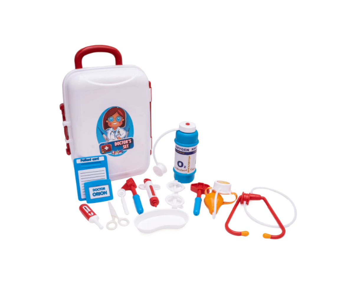 Набір іграшкового медичного обладнання в практичній валізці з колесами і висувною ручкою - це зручний ігровий набір для дітей. У цьому наборі ви знайдете лоток, дзеркальце для огляду, ножиці, медичну карту, бейджик, окуляри, медичний молоток, воронку для огляду, термометр, фонендоскоп, тонометр і шприц. Всі компоненти набору виготовлені з міцних і безпечних матеріалів і призначені для дітей від 3 років.