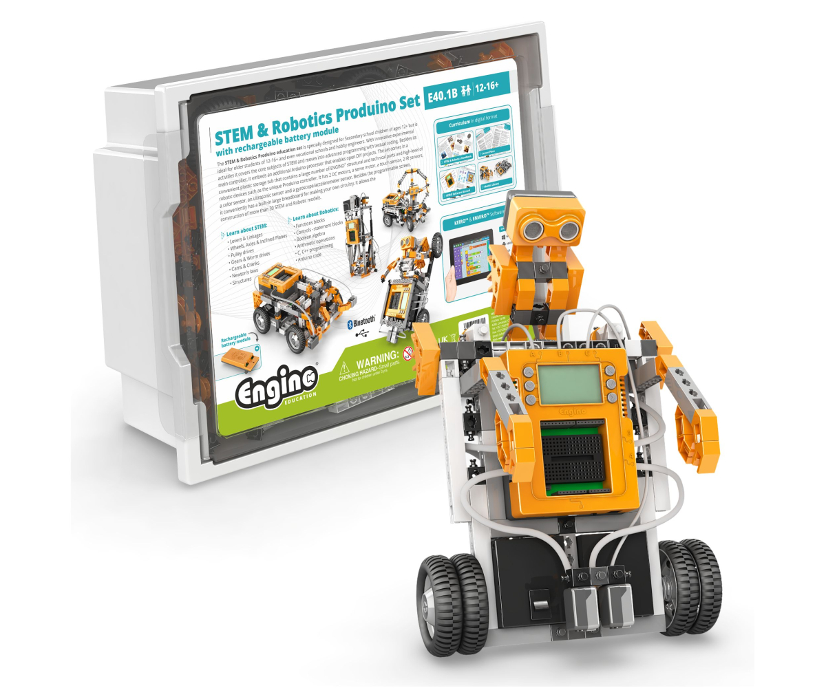 Набір поєднує експериментальні STEM-активності з просунутим текстовим програмуванням на базі контролера Produino та вбудованої платформи Arduino для відкритих DIY-проєктів. Набір містить конструктивні деталі, а також високотехнологічні робототехнічні компоненти: 2 двигуни DC, сервомотор, сенсор дотику, ультразвуковий сенсор, компас, колірний сенсор, 2 ІЧ-сенсори, гіроскоп/акселерометр та великий вбудований макет (breadboard) для створення власних електричних схем. За допомогою набору можна створити понад 30 моделей у сфері STEM і робототехніки.
