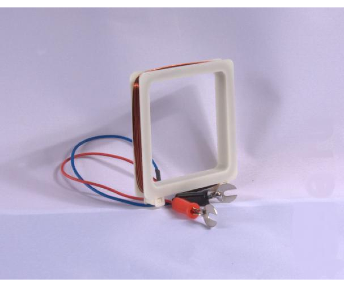 Використовується дротяна рамка при проведенні фронтальних лабораторних робіт з електродинаміки. За допомогою дротяної рамки спостерігають дію магнітного поля на провідник зі струмом, вивчають явище електромагнітної індукції, досліджують спектри магнітного поля провідника зі струмом, для визначення горизонтальної складової магнітного поля Землі. Являє собою пластмасовий каркас ( 100х100х10мм) з намотаними витками мідного дроту. Розрахована на напругу до 12В.