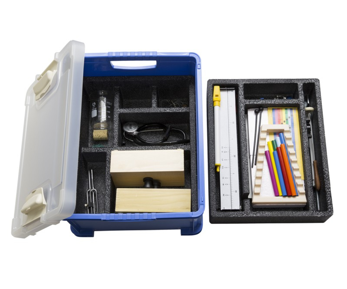 Цей набір призначений для демонстрації основ акустики та принципів поширення звуку. Дозволяє виконати 27 навчальних експериментів, що охоплюють теми коливань, хвиль, резонансу, інтерференції, відбиття звуку, а також будову та роботу людського вуха.