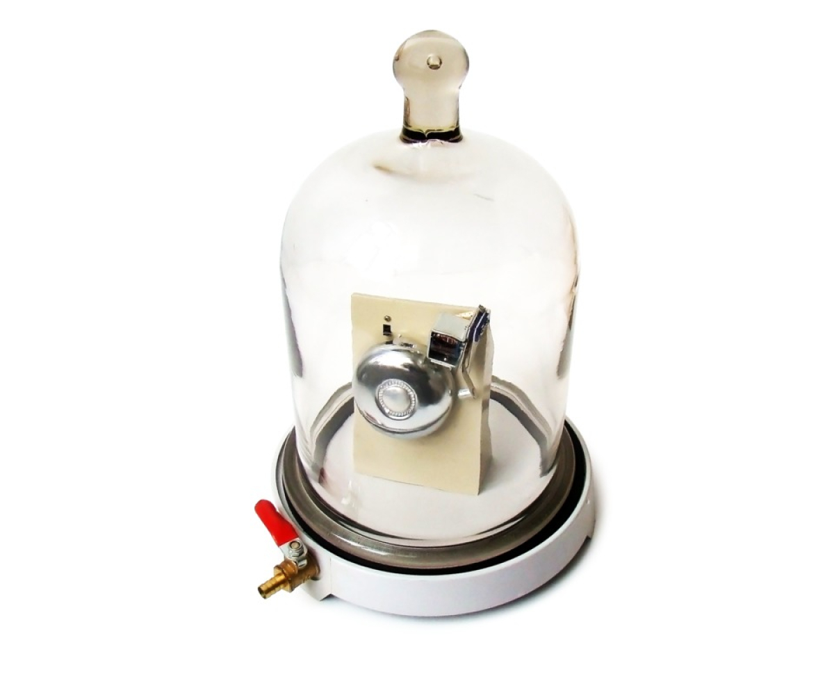 Прилад складається із основи, виконаної у вигляді пластмасового диска (тарілки) на ніжках, з патрубком та краном для відкачування повітря, ковпака з товстого скла, гумової прокладки і електричного дзвоника.