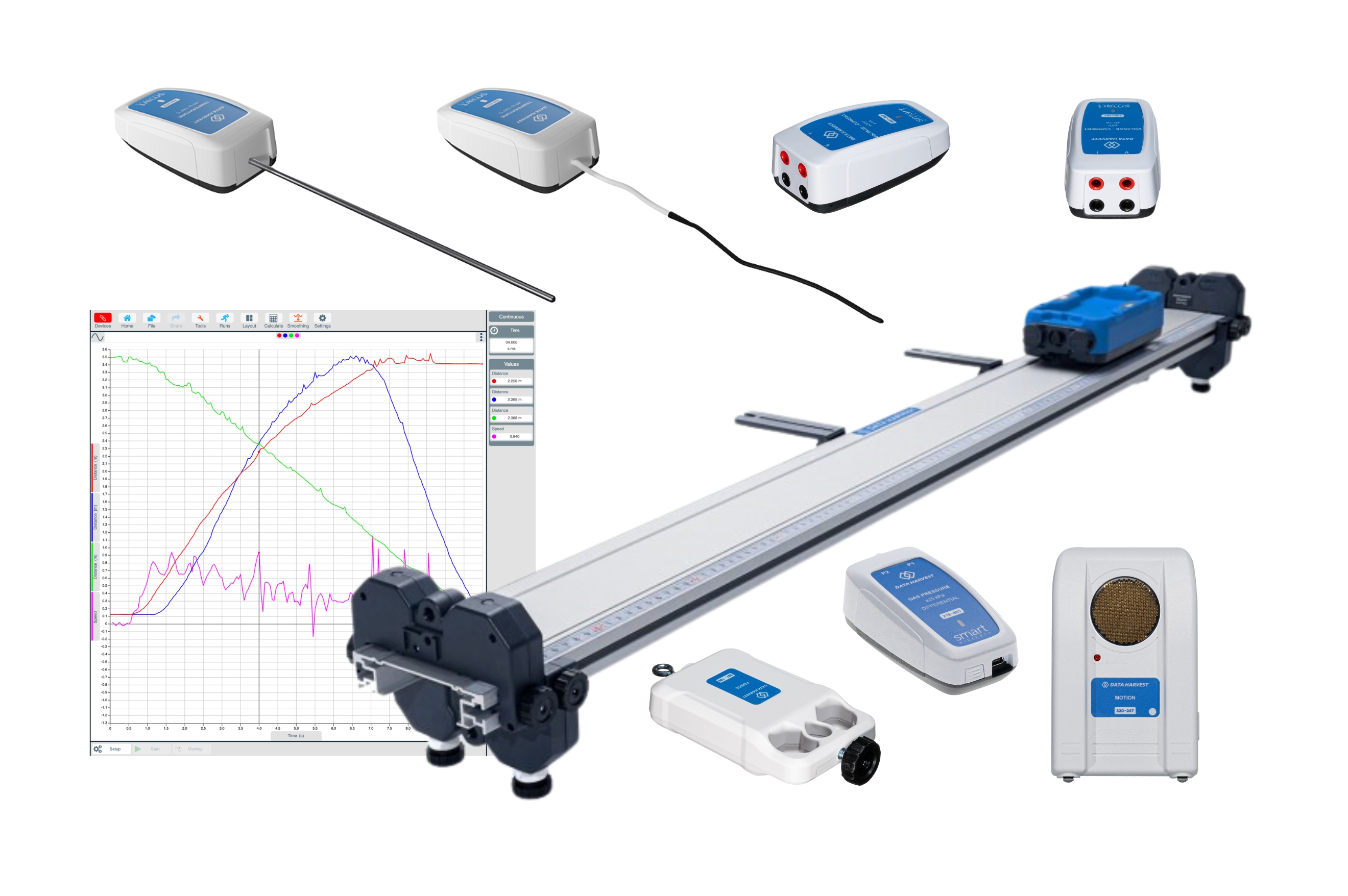 Кожен прилад допомагає у вивченні конкретних тем. Серед популярних: датчики руху, сили, струму, напруги, тиску й температури. Також є комбіновані рішення й багатофункціональні системи. Прилади мають міцний корпус і компактний розмір. Вони легко підключаються до ноутбуків, планшетів, ПК, смартфонів через Bluetooth.