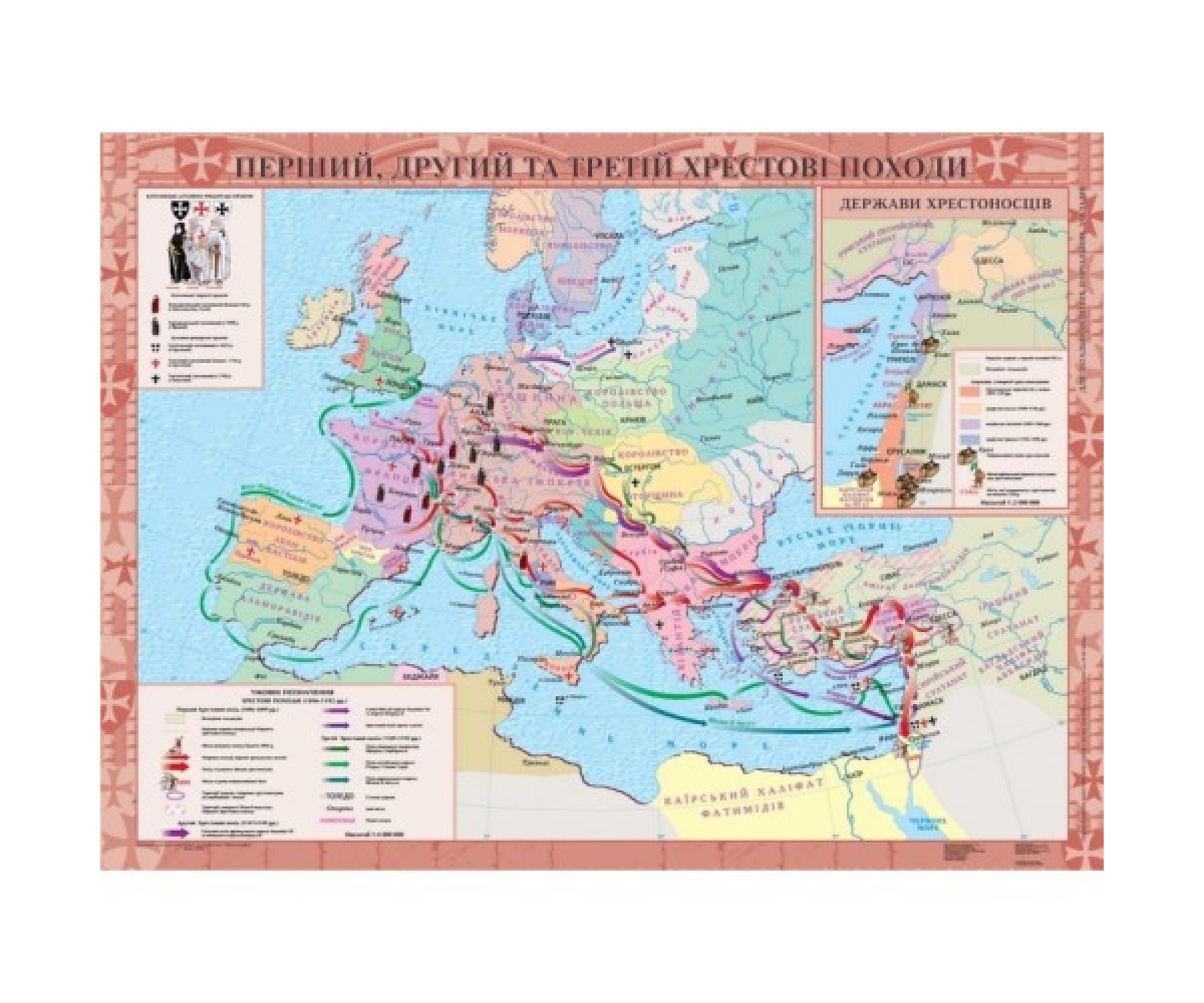 Купити Перший, Другий та Третій Хрестові походи, м-б 1:4 000 000, 7 клас на планках, стінні навчальні карти (материки та океани, країнознавство, географічний простір) та обладнання для кабінету географії Ви можете за ціною від виробника та з доставкою по всій Україні. Для цього просто оформіть замовлення через кошик сайту або зв'яжіться з нашими менеджерами, які нададуть усю необхідну інформацію.
