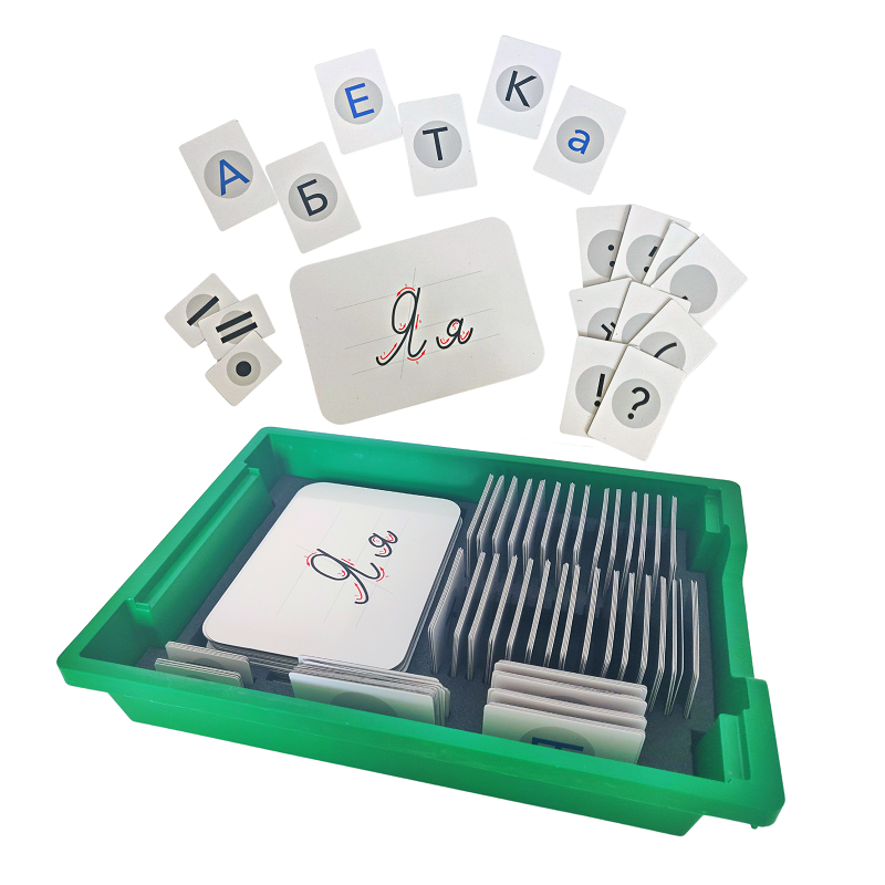Викладання слів на магнітно-маркерних дошках і планшетах закріплює навички правопису без заучування правил. Також у продажу є літерні каси з фетру, активізуючі кінестетичну сприйняття: діти-кінестетики краще засвоюють матеріал через тактильні відчуття.