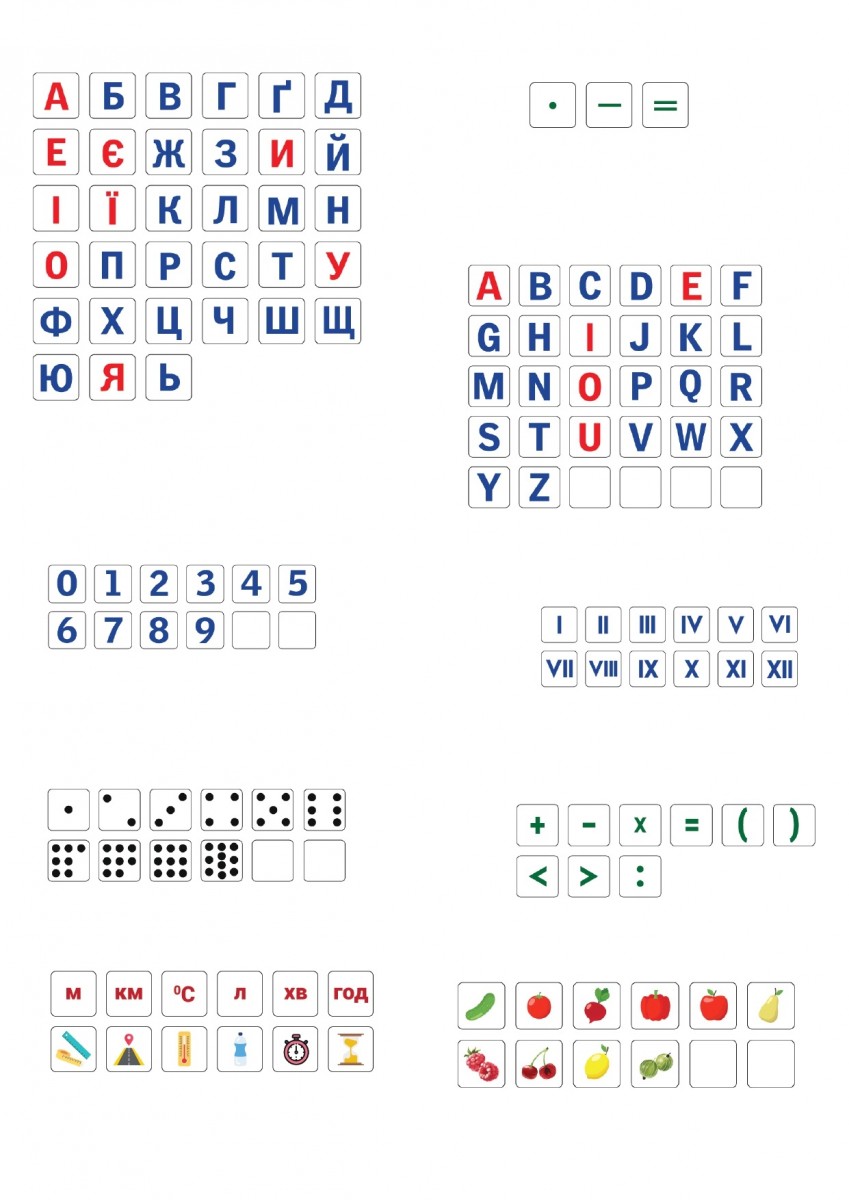 • літерні каси, віяла і магнітно-маркерні дошки;
