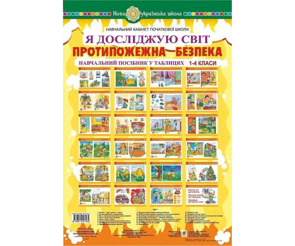 Навчальний посібник у таблицях “Я досліджую світ. Протипожежна безпека” — елемент дидактико-методичного комплекту, який рекомендується використовувати на уроках з курсу “Я досліджую світ” під час пояснення, закріплення, узагальнення знань, умінь та навичок учнів. Зміст посібника відповідає Державному стандарту початкової освіти та типовим освітнім програмам.