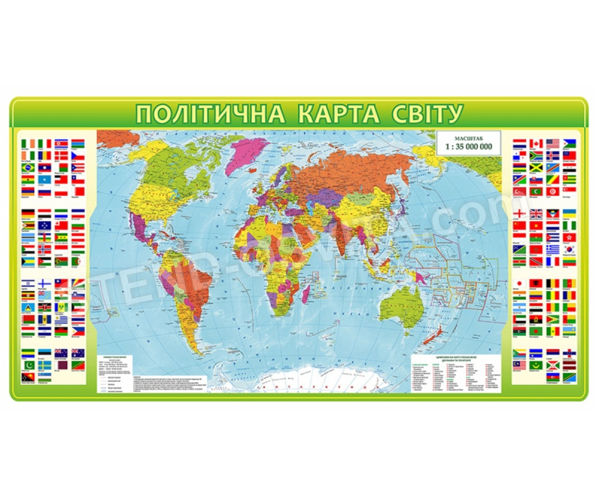 Головна Політична карта світу з прапорами всіх країн