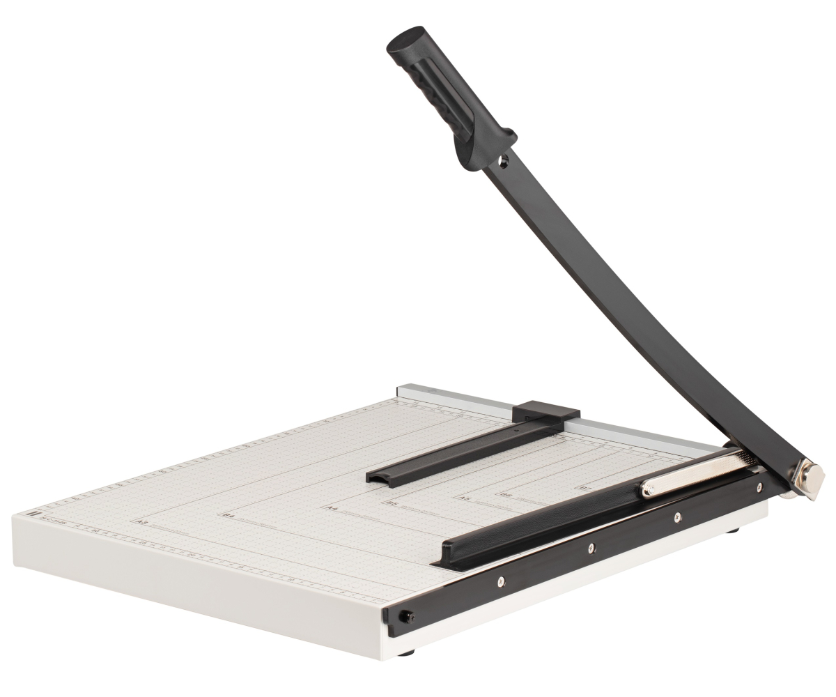 Додаткові характеристики: металева основа. На столі нанесена розмітка стандартних форматів паперу включаючи фото розмір, а також мітки для різу під кутом. Контрлезо не дозволяє ножу затупитися.