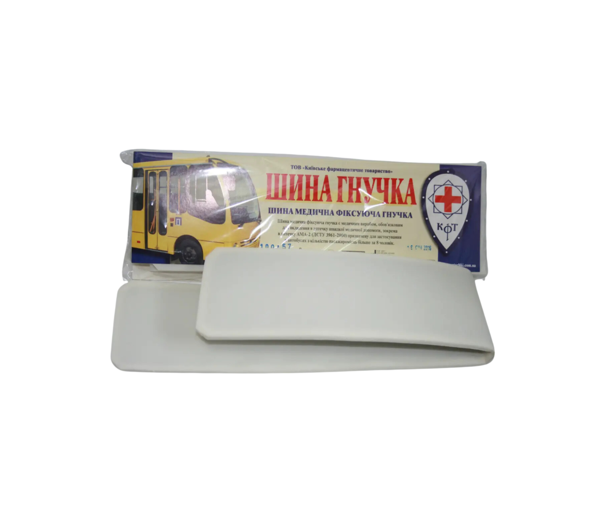 Шина медицинская фиксирующая (шина гибкая) предназначена для оказания первой медицинской помощи при травмах (переломе, вывихе) верхних конечностей для обеспечения состояния покоя (недвижимости) костей (суставных) в месте перелома (вывивишка).