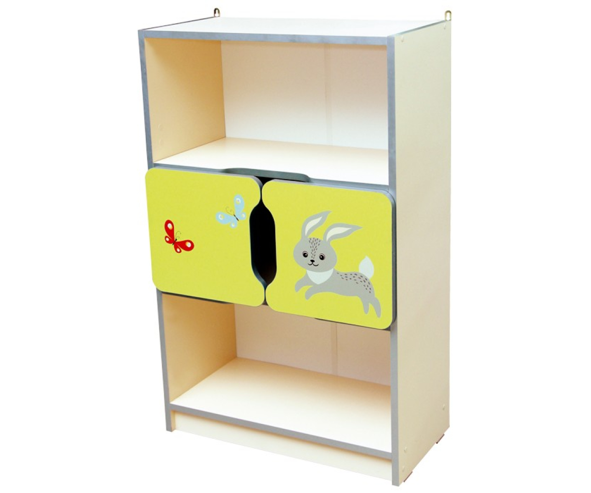 Стінка напівзакритого типу з малими дверями, на 3 відділення, всередині 2 полиці. Має фігурні вирізи та елементи.