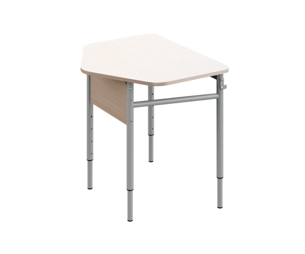 Каркас столу — металевий, складається з чотирьох вертикальних опор, з'єднаних металевими перемичками. Стільниця п'ятикутна, наявний екран. Передній край стільниці має ергономічний виріз для зручного розміщення учня.