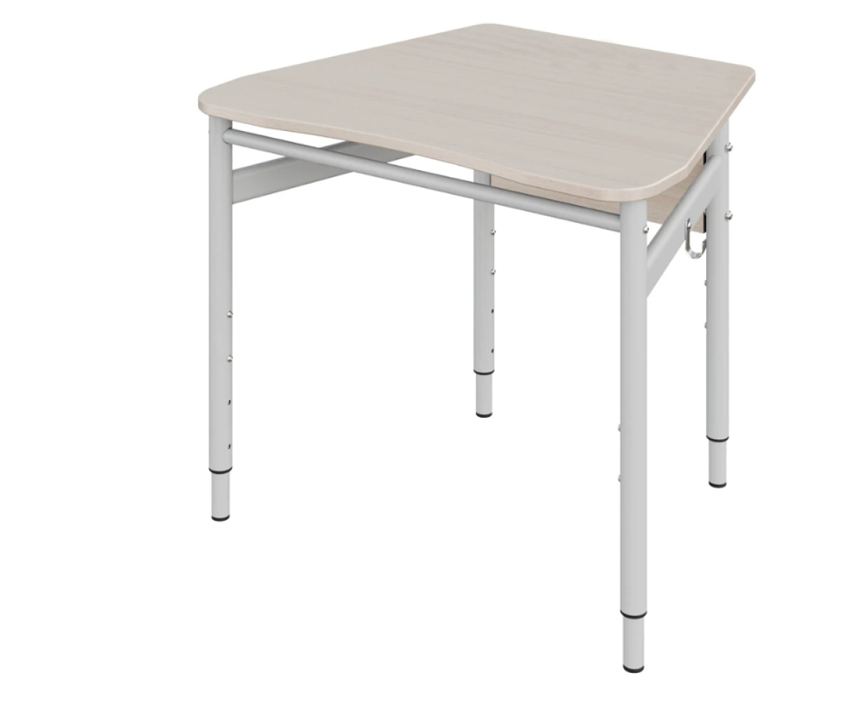 Каркас столу — металевий, складається з чотирьох вертикальних опор, з'єднаних металевими перемичками. Стільниця в формі трапеції, наявний екран. Передній край стільниці має ергономічний виріз для зручного розміщення учня.