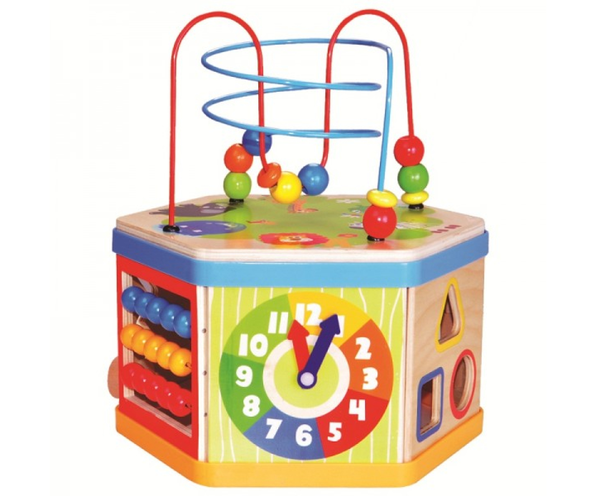 Кожна з шести сторін сортера виконує свою функцію, допоможе у розвитку уяви, посідючості, дрібної моторики, логічного мислення, коордінації рухів.