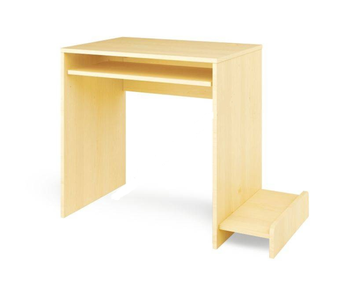 На столі є висувний ящик для клавіатури та поличка для настільного комп’ютера.