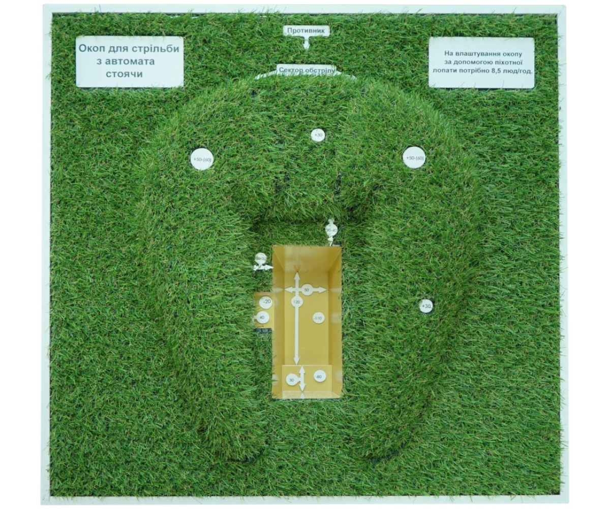 Комплект наочних посібників стендів - "Фортифікаційні споруди - Окоп для стрільби з автомата стоячи"