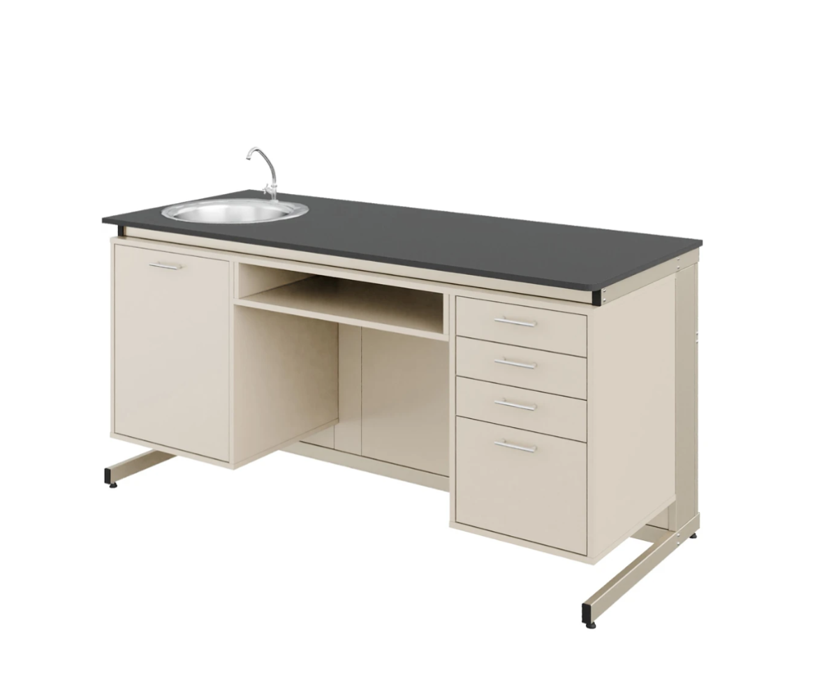 Закрита тумба під мийку, відкрита ніша під стільницею, 4 шухляди: 1 шухляда з фасадом висотою 250 мм; 3 шухляди з фасадами висотою 133 мм. Шухляди встановлені на телескопічних направляючих повного висування (довжина — 450 мм). Врізна мийка та змішувач-монокран у комплекті (сіфон і шланги для підведення води — не входять).