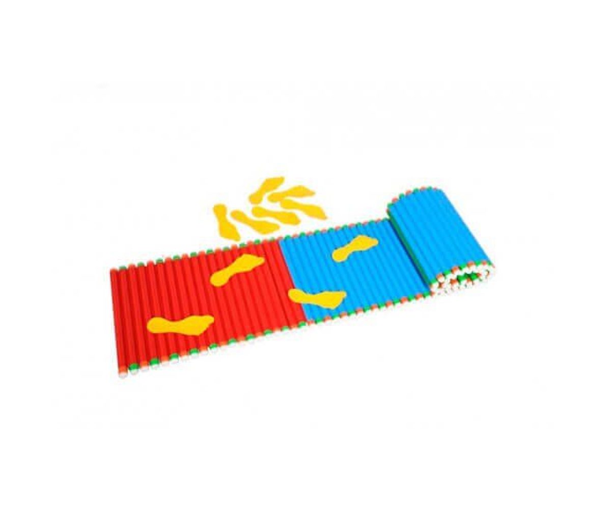 Доріжка виготовлена з якісних та безпечних матеріалів. Компактна, проста у користуванні та догляді. Всередині наповнена трубками з поліетилену. В комплекті є слідочки, які можна накладати на доріжку.