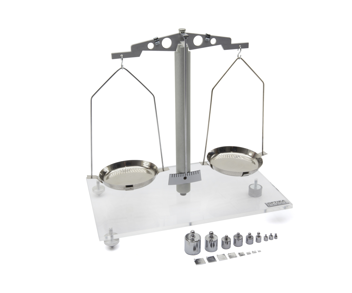 Технічні терези дозволяють порівнювати дві маси. Дві пластини підтримуються балкою, яка спирається на точку опори.