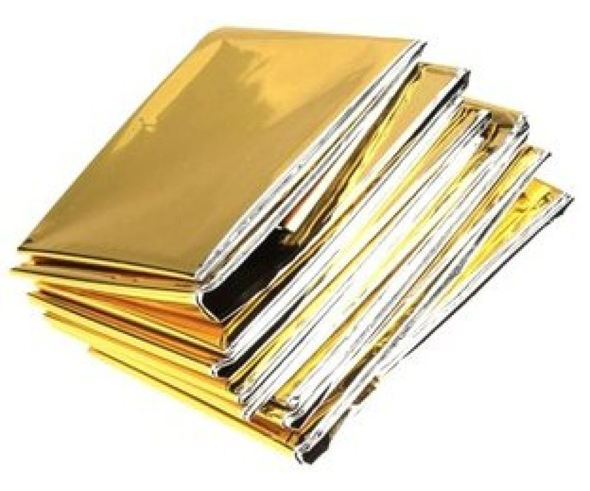 Захисна рятувальна ковдра з двостороннім покриттям - золотим і срібним з високоякісної спеціальної фольги використовується при невідкладній медичній допомозі, туризмі, надзвичайних ситуаціях або екстремальних умовах.