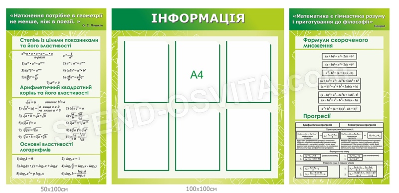 Головна Ukraine Facility Математика Стенди для кабінету математики