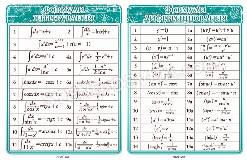 Комплект стендів «Формули інтегрування, форму...