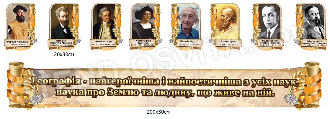 Комплект портретів географів та стрічка над д...
