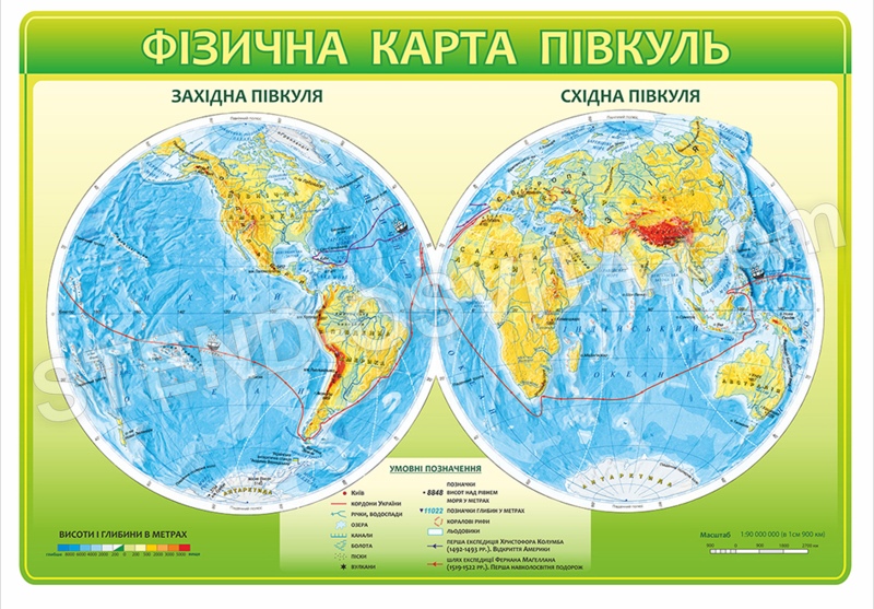 Стенд «Фізична карта півкуль»