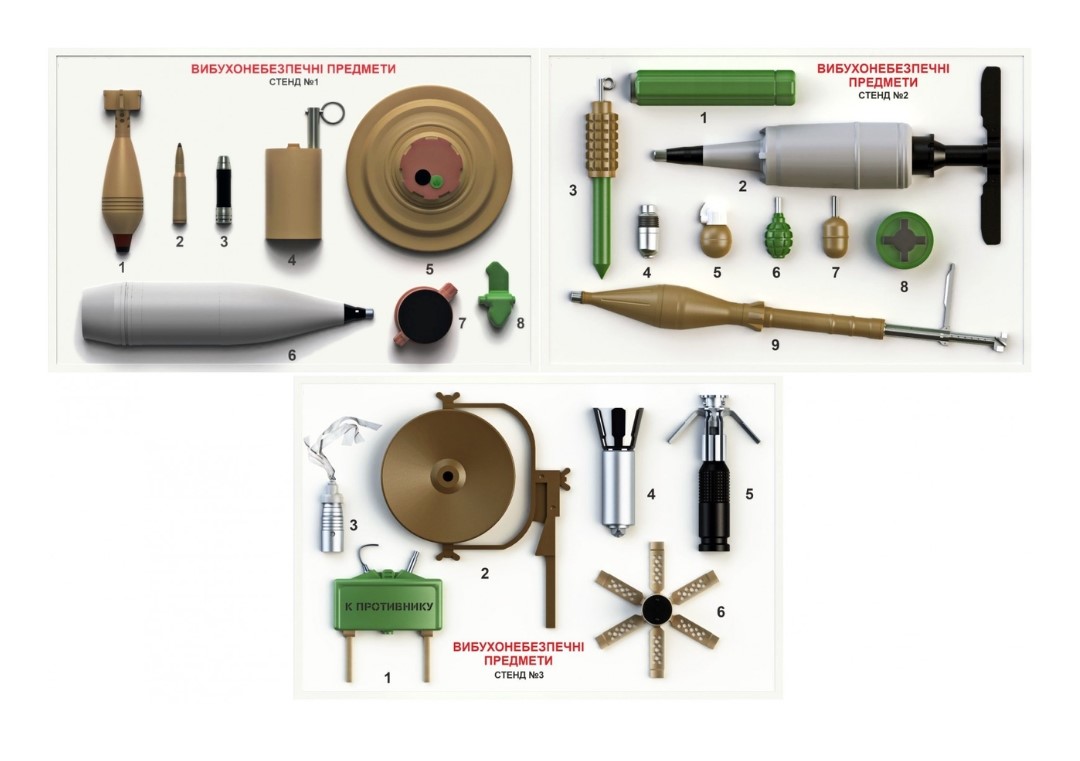 Крім цього, подані відомості з вогневої підготовки, основ володіння зброєю та заходів безпеки при поводженні з військовою технікою. Спеціальні розділи присвячені попереджувальним знакам про міни, вибухонебезпечні предмети та правила поведінки в потенційно небезпечних зонах. Це допоможе сформувати в учнів відповідальне ставлення до питань особистої безпеки та захисту оточуючих. Окрема увага приділяється медичній тематиці. На стендах представлені плакати з алгоритмами надання першої допомоги при травмах та пораненнях, інструкціями щодо зупинки кровотечі, накладення пов'язок та евакуації постраждалих.